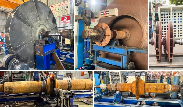 Sau khi đắp, trục quạt được gia công tinh để đạt đúng kích thước và độ chính xác theo yêu cầu kỹ thuật.