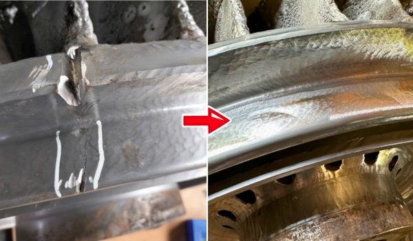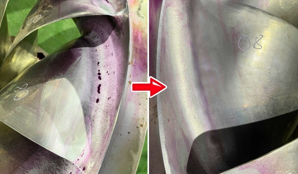 • Khu vực chân cánh: Thực hiện mài và loại bỏ phần kim loại bị xâm thực.